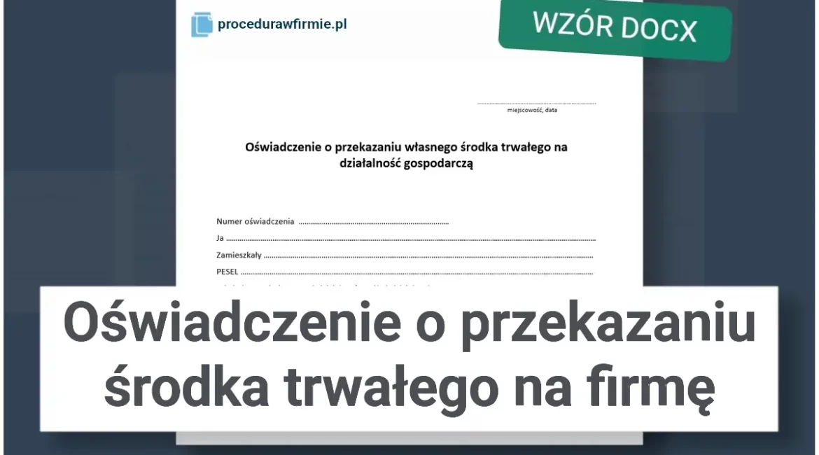 Oświadczenie o przekazaniu środka trwałego na firmę